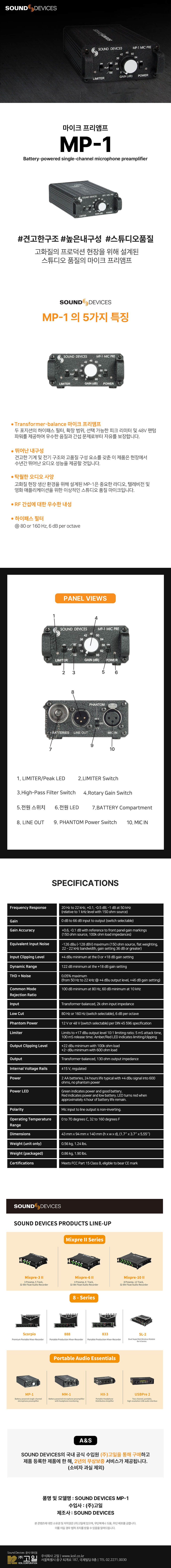 이미지 확대보기Sound Devices MP-1 마이크 프리앰프 사운드 디바이스